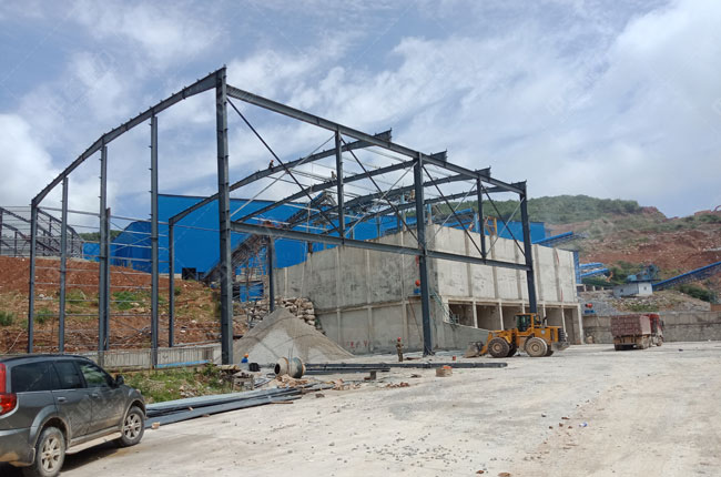 該項目是17年投產,為一條時產700噸的石灰石石料生產線。中譽鼎力為其配置的是“給料機+顎破+錘破+振動篩”,生產線主要生產13、12、05等各種規(guī)格的機制骨料。